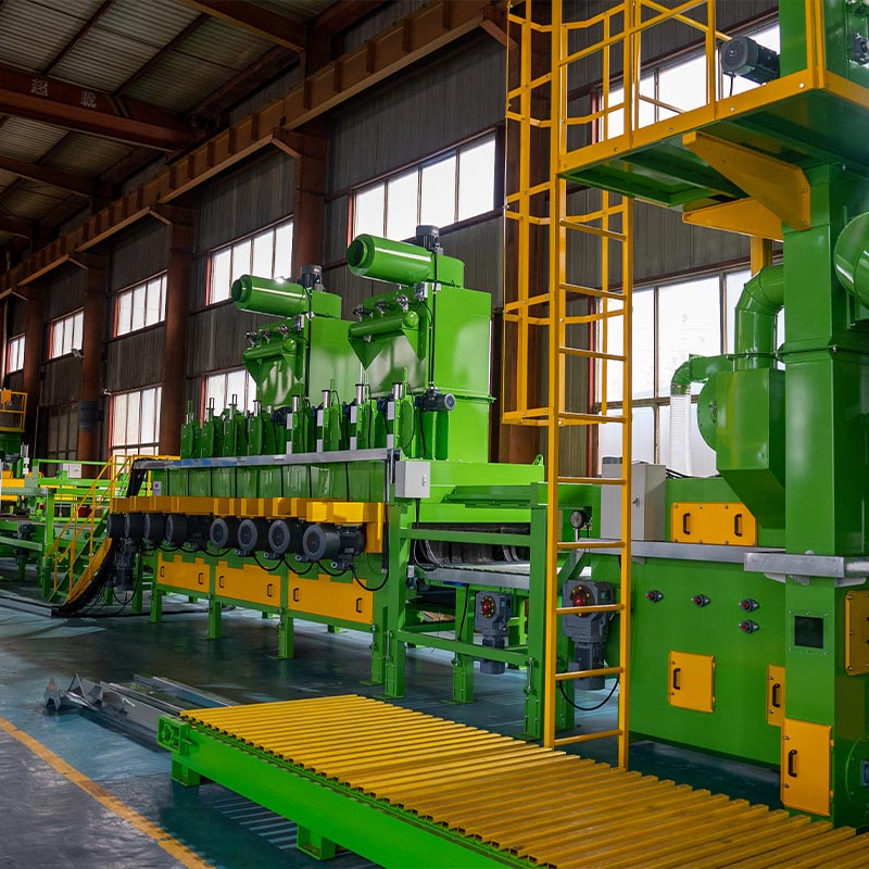 8개의 연마 브러시 롤러 세트가 거친 부분과 미세한 부분을 순차적으로 완성하는 고무 트랙 컨베이어 시스템
